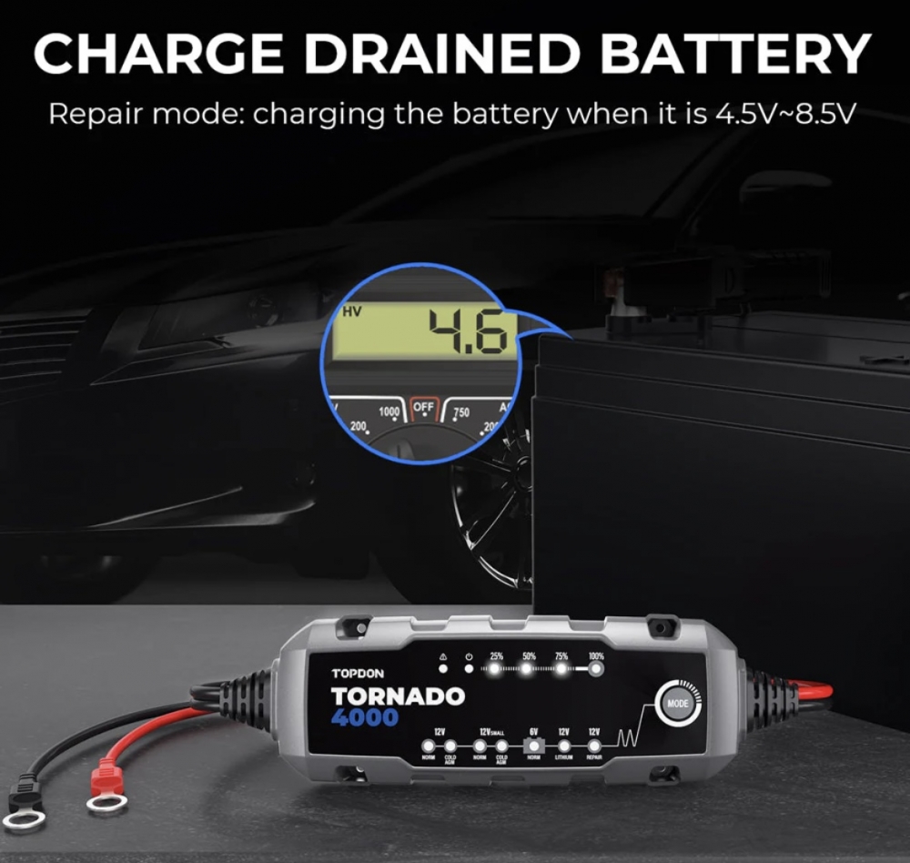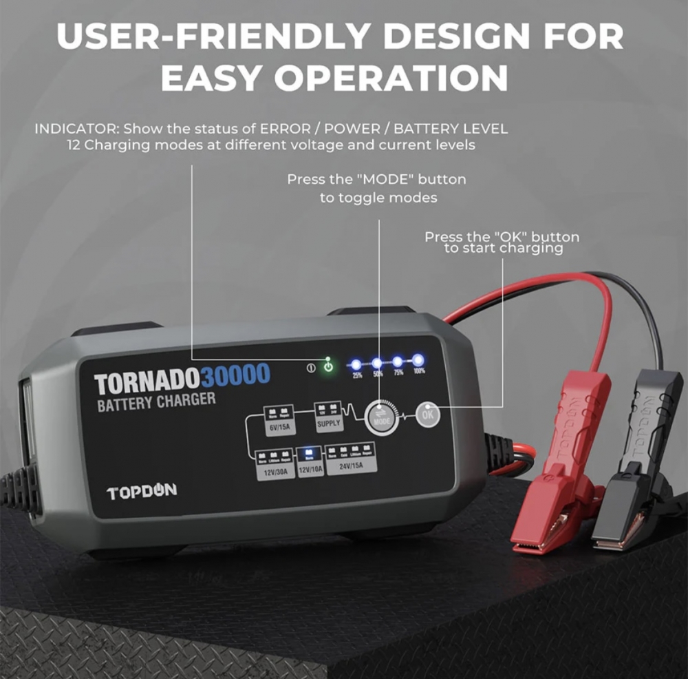 Topdon Tornado 4000 batterilader 4A 6/12V