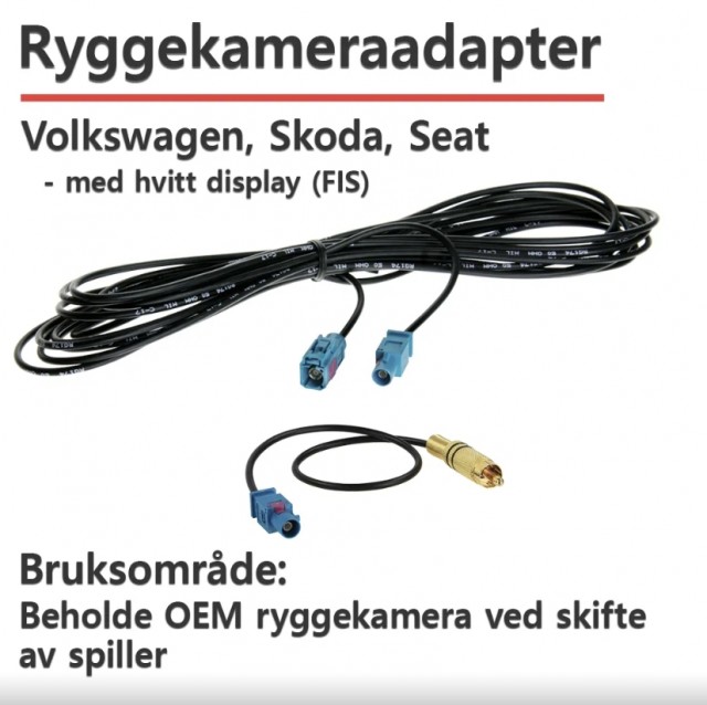Dette adapteret benyttes for å beholde originalt ryggekamera ved utskiftning til ettermarkedsspiller i VW, Skoda og Seat, m/hvitt display i instrumentpanel (FIS).