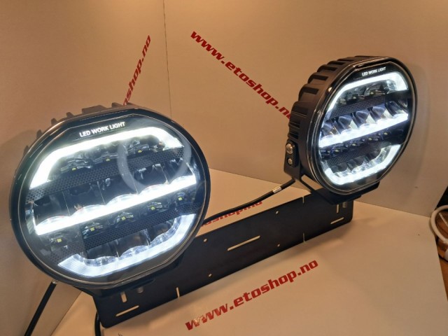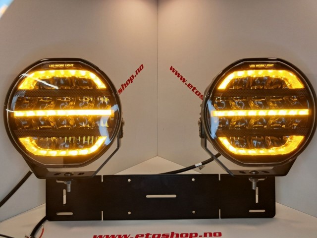 Pakke med 2stk E-light Pro 9, skiltbrakett for 2 lamper og kabelsett.