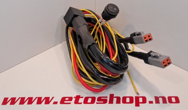 Kabelsettet er levert ferdig koblet med 2stk DTP-2 kontakter og bryter på ledning til signalet. ønsker du ikkeå bruke bryteren kan den fjernes å du kobler signal fra fjernlyset direkte på den gule ledningen.