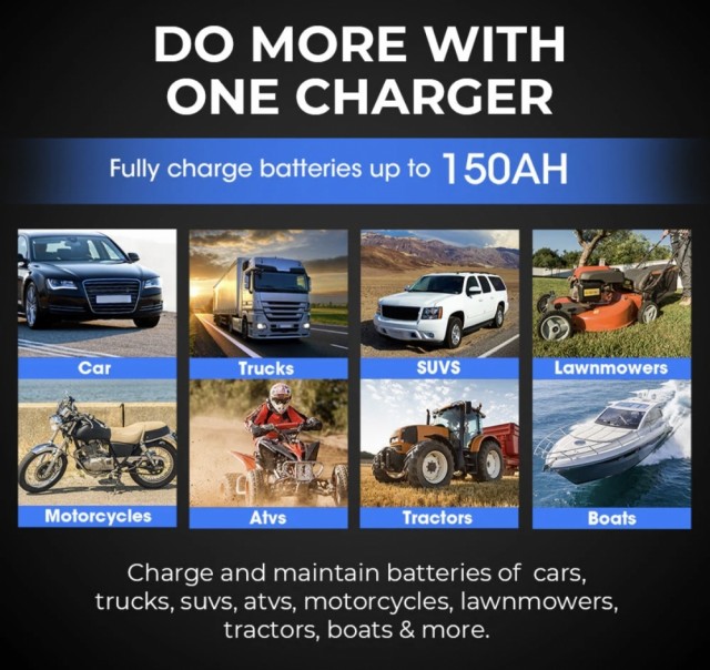 Det er også en avansert batteriholder, vedlikeholdslader og desulfator. Denne batteriladeren kan automatisk oppdage batterisulfatering og syrestratifisering, slik at brukere kan gjenopprette tapt ytelse for å starte motorer enklere og forlenge batterilevetiden.