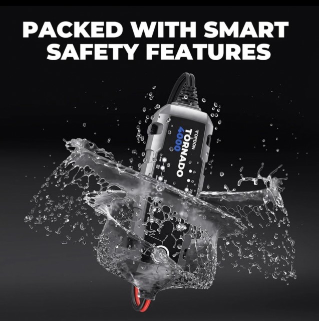 Tornado4000 er designet for å motvirke dårlige værmønstre som kan endre batteriets ladeprosess. Innebygde sensorer registrerer automatisk utetemperaturen og endrer utgangsladingen for å eliminere overlading i varmt klima og underlading i kaldt klima. Denne laderen kan reparere batterier i miljøer fra -10℃ til 40℃ (14℉ til 104℉).