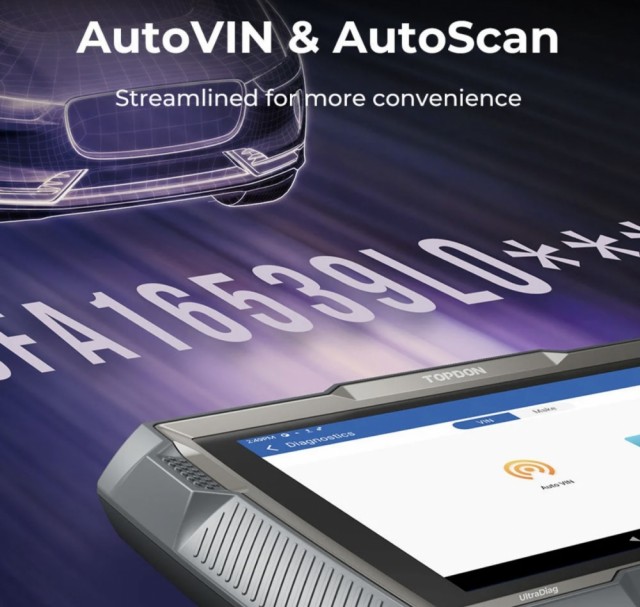 AutoVIN identifiserer kjøretøyinformasjon, mens AutoScan oppdager alle kjøretøyssystemer og henter DTC-er for strømlinjeformet diagnose.