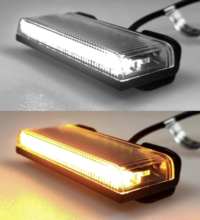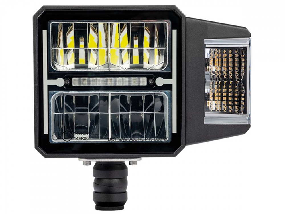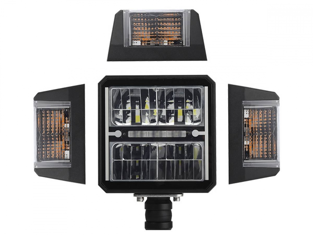 Arbeidslys med varme i glasset for kjøretøy som f.eks brøyter hvor det fyker snø og tetter lampene.
