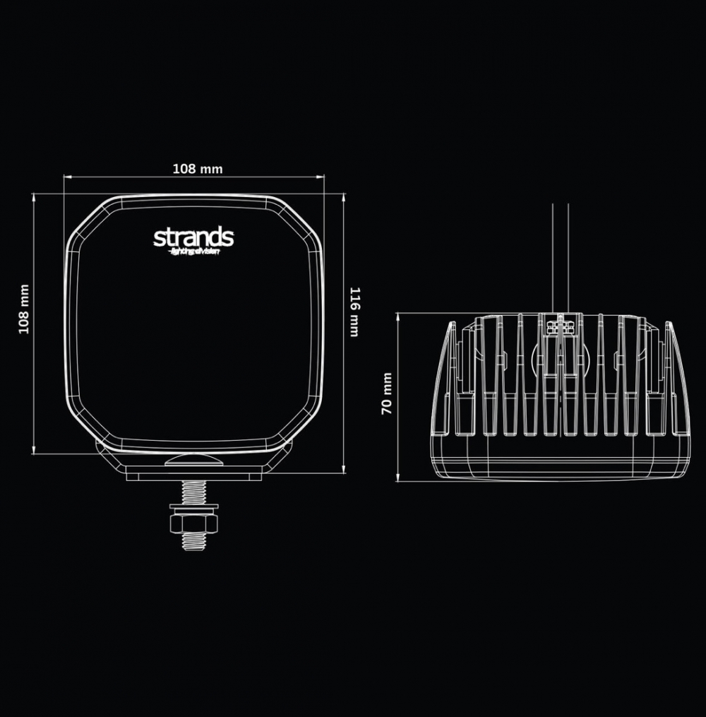 Meget kraftig arbeidslampe for montering på kjøretøy som krever høy styrke på arbeidslys.