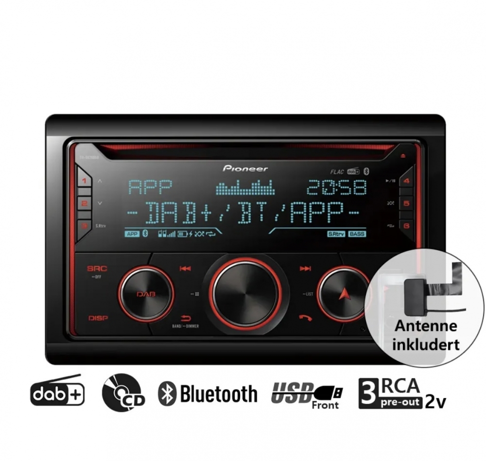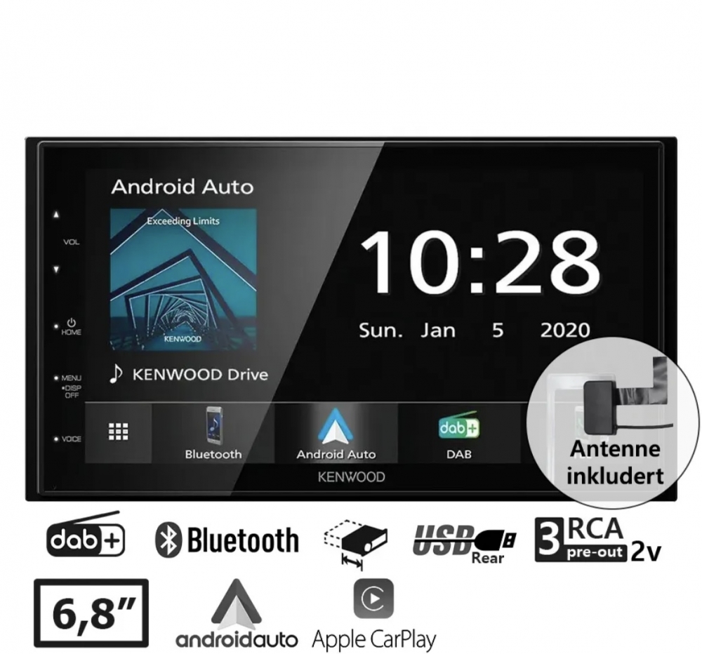 CarPlay, Android Auto, Bluetooth, DAB+, shortbody, DAB-antenne