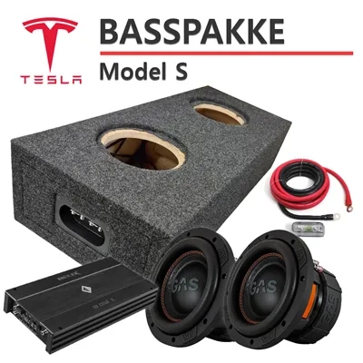 Komplett basspakke med 2x8`` subwoofere i kasse og 1000W monoblokk, tilpasset Tesla Model S
