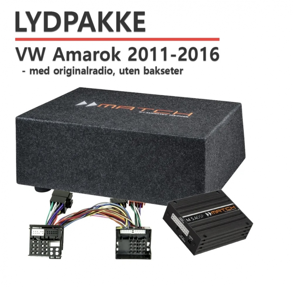 Basspakke for VW Amarok med original radio, uten bakseter. Plug and play.