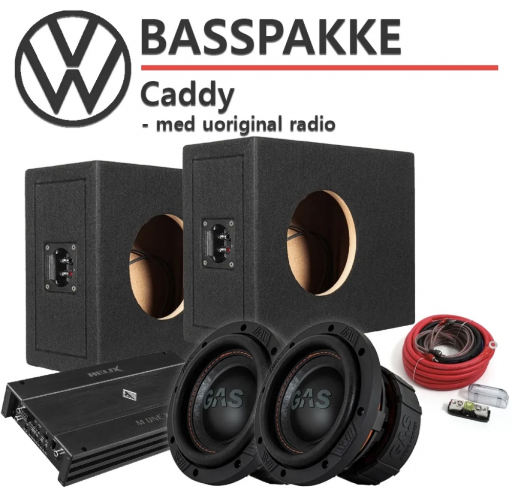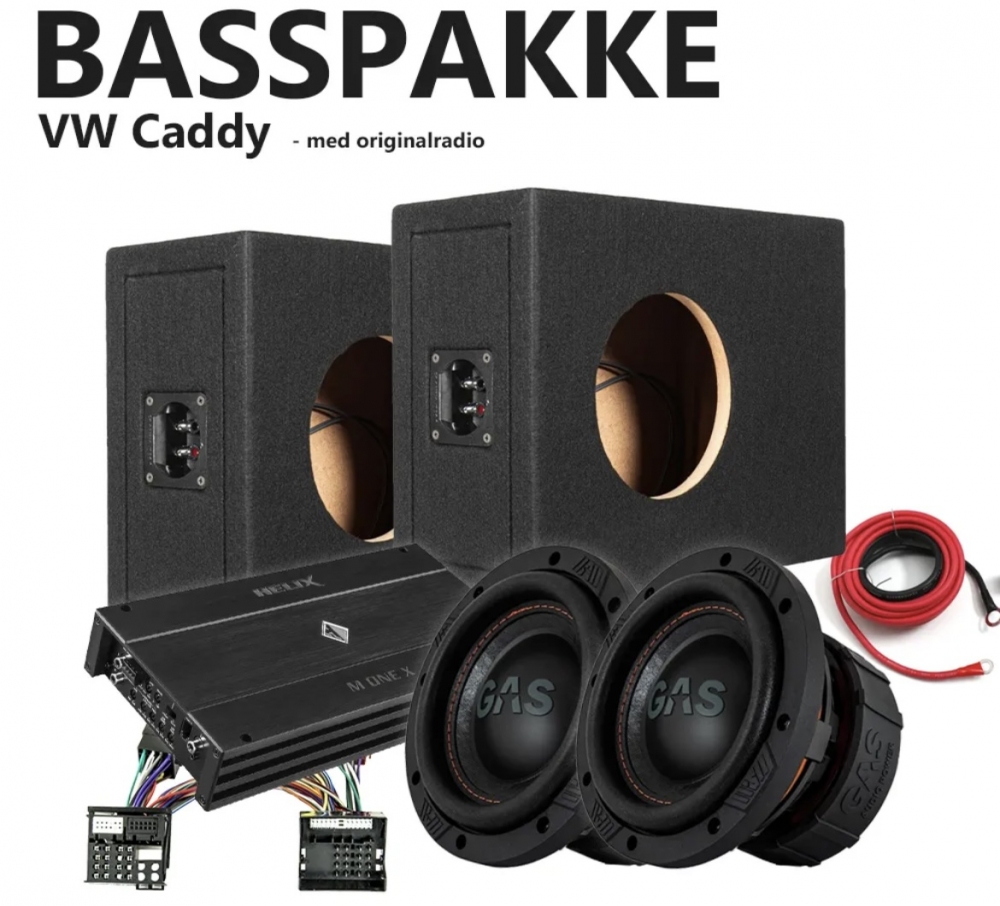 Basspakke for VW Caddy 2004-2020 med originalradio. Plug and play.