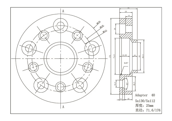 Adapter Spacer 5x130 - 5x120 71,6mm/72,6mmCB 25mm NR61