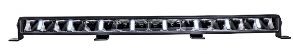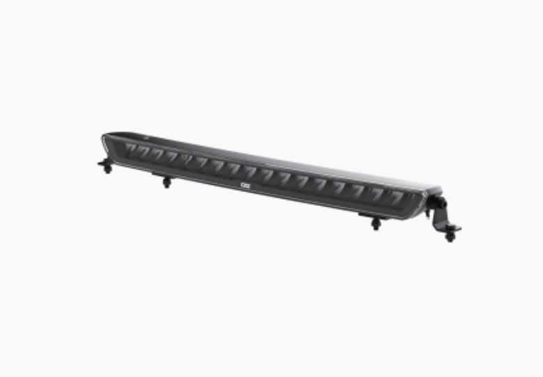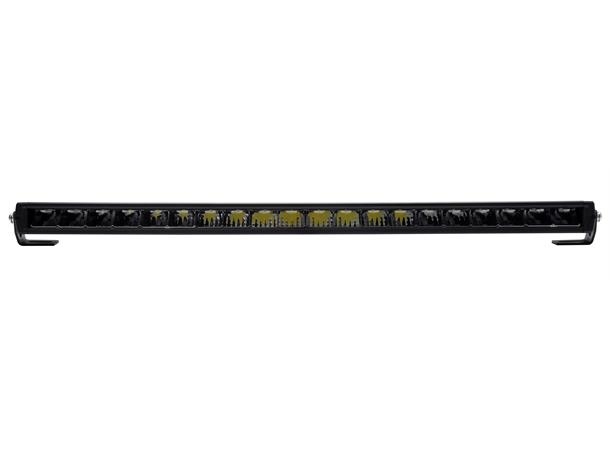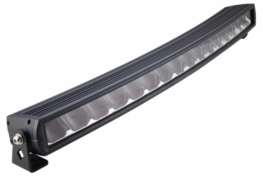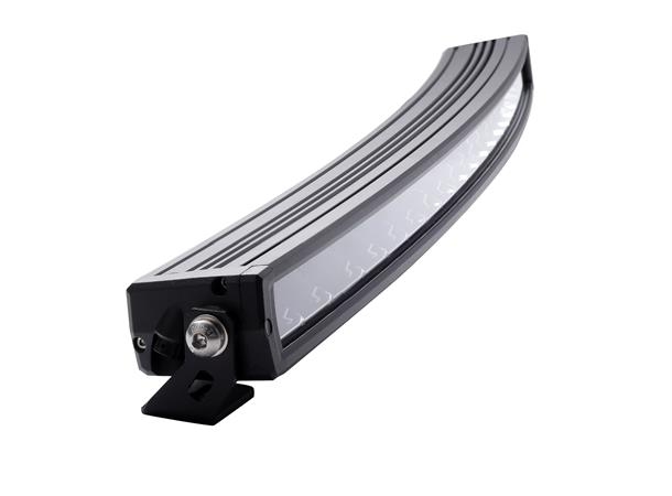 Bøyd/curved LED bar Dette gjør at lyset sprer seg godt ut til sidene samtidig som du får bra kastelengde. Mørk innmat gjør at denne blir diskre på dem fleste biler. Justerbare fester i bunn og topp i tillegg til sidefester