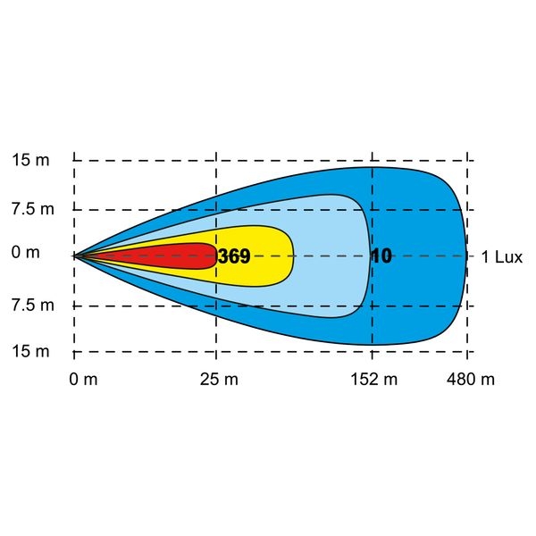 Bra kastelengde men veldig bra bredde på lyset også! Lyser 80m til hver side @ 1lux!