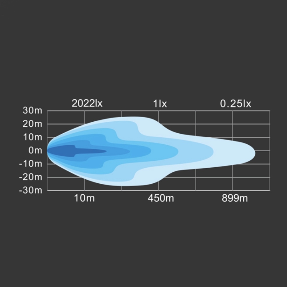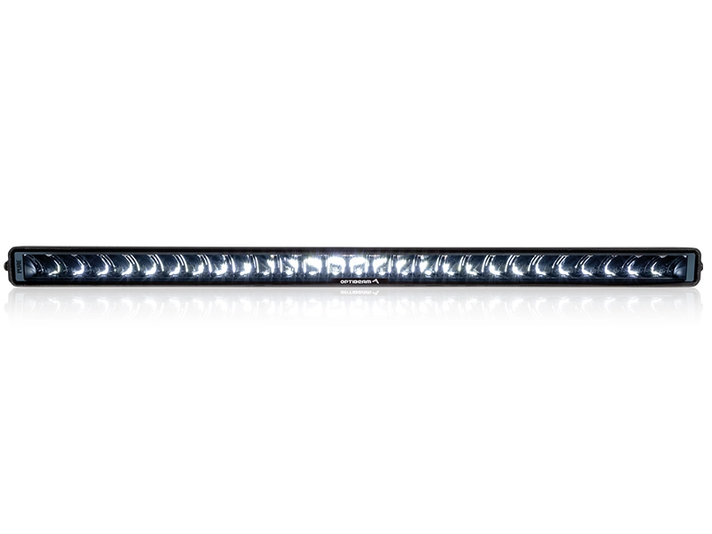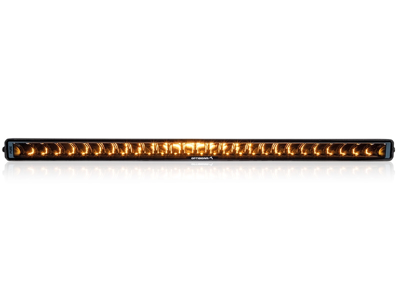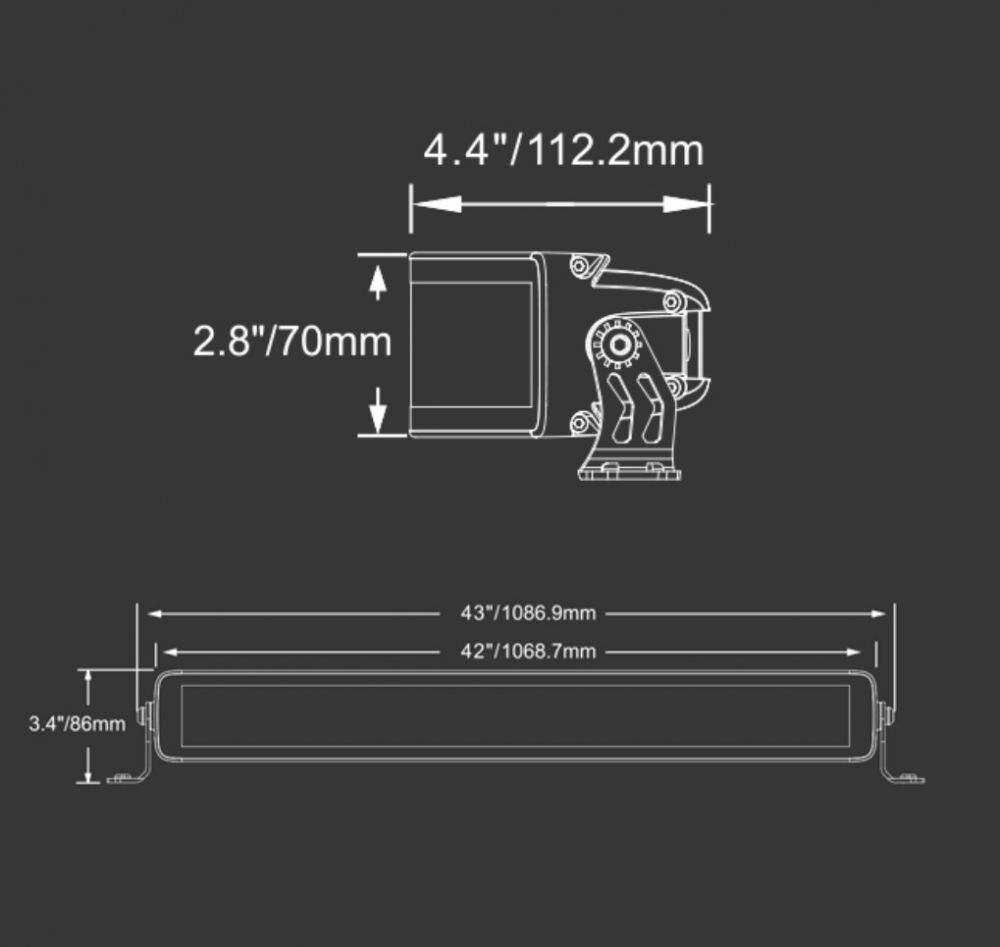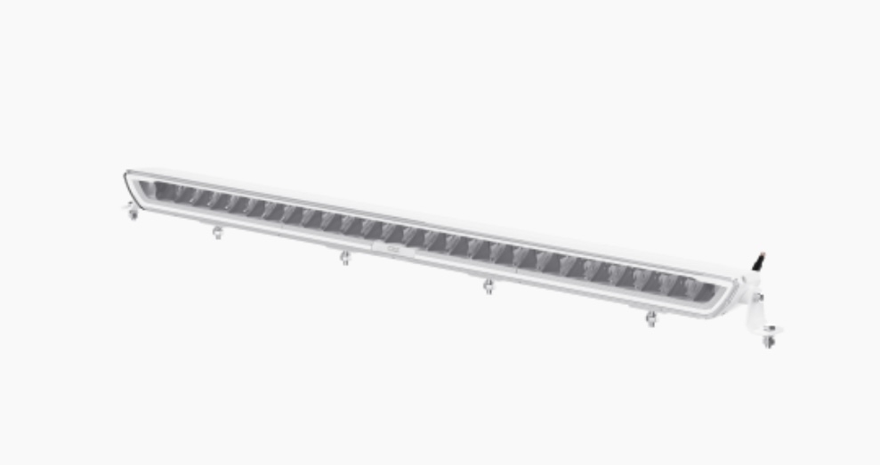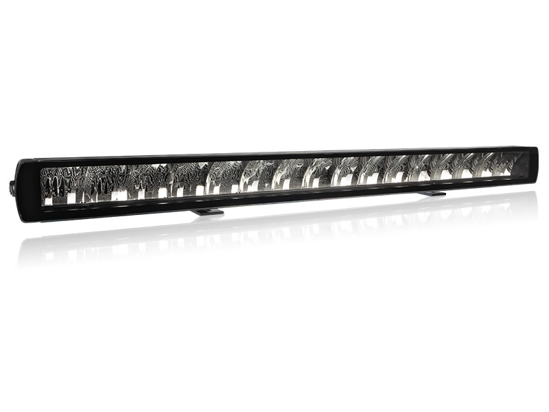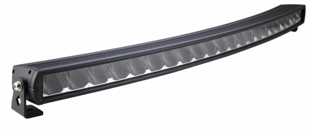 Bøyed/curved LED bar. Dette gjør at lyset sprer seg godt ut til sidene samtidig som du får bra kastelengde. Mørk innmat gjør at denne blir diskre på dem fleste biler. Justerbare fester i bunn og topp i tillegg til sidefeste