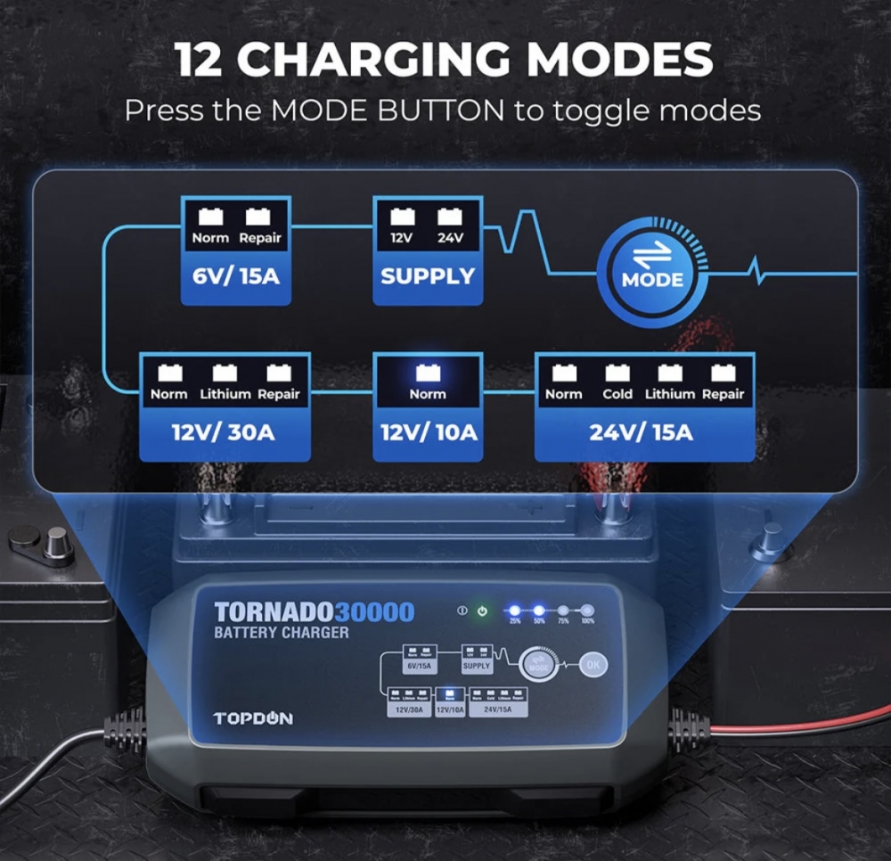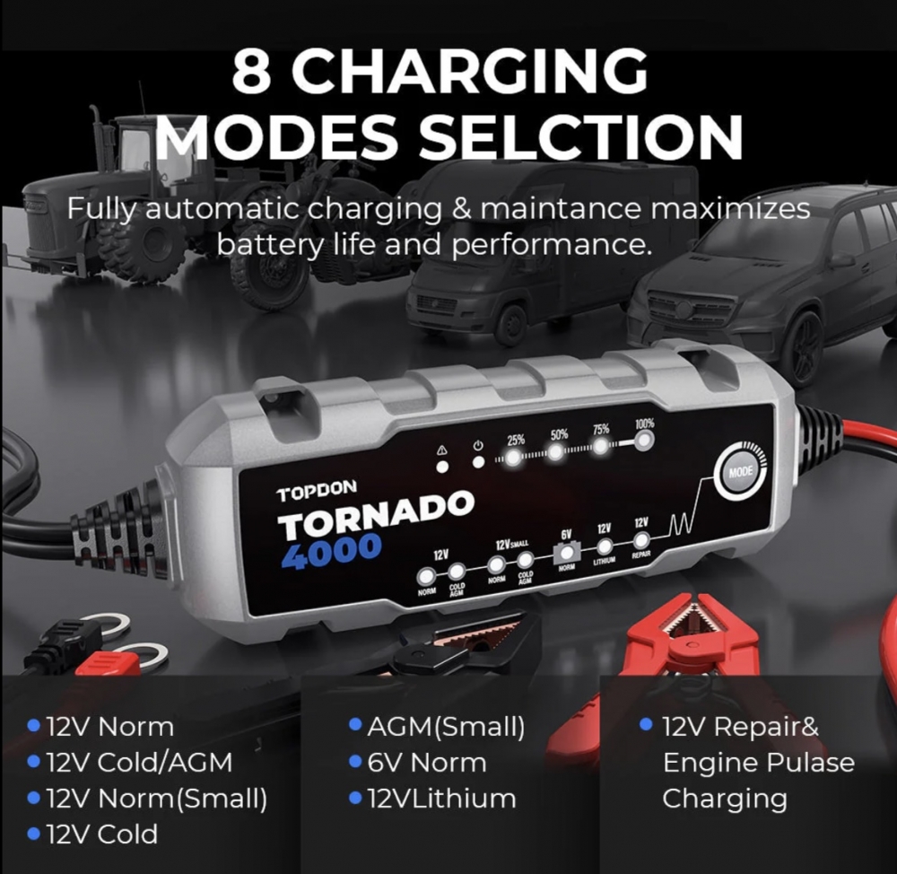 Topdon Tornado 4000 batterilader 4A 6/12V