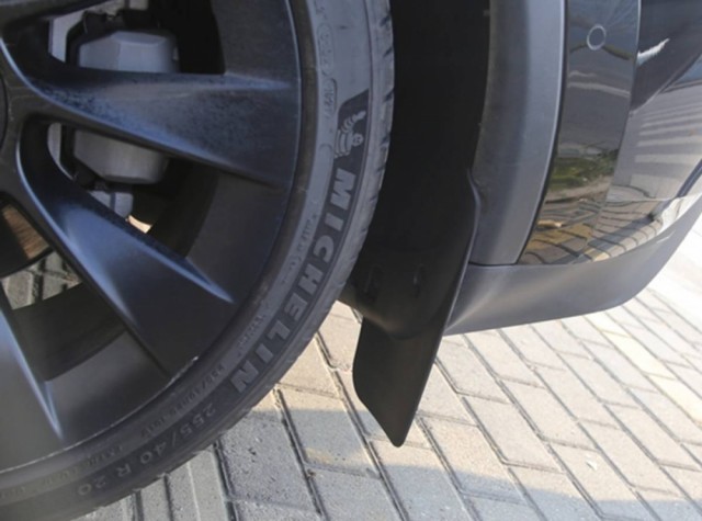 Alle Tesla Model Y leveres med skvettlapper foran fra fabrikk, men bak mangler disse og er heller ikke å få kjøpt fra Tesla.