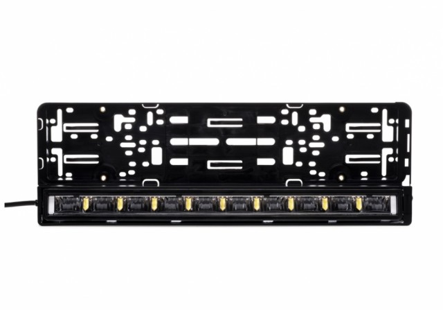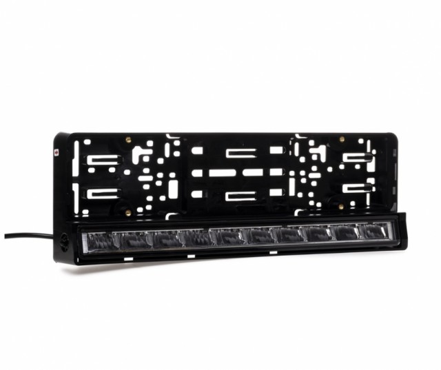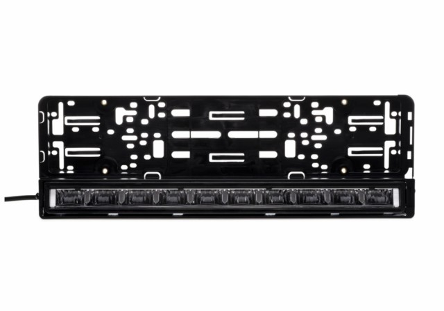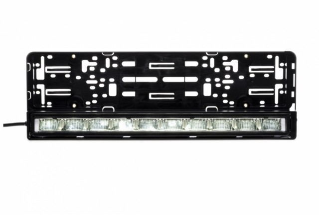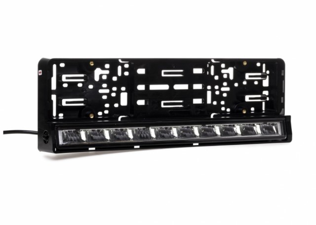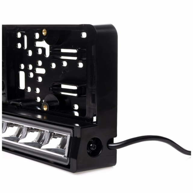 Nummerskilt holderen er svakt buet for optimal passform. Det følger med gummiklosser som kan brukes for å gi riktig passfasong til din bil. Når skiltholderen er montert kan du justere ledbaren sin lyshøyde opp og ned, tilsammen 25 grader. For å koble opp ledbaren til bilen sitt fjernlys anbefaler vi å benytte ett kabelsett med DT4 kontakt.