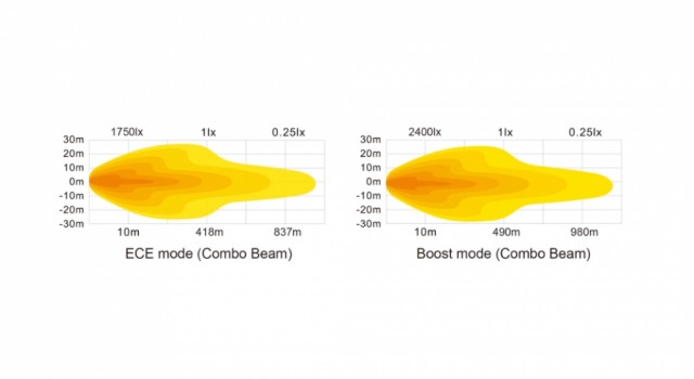 - Kastelengde (Lux @ 10m): 2400 (Boost) / 1750 (ECE)