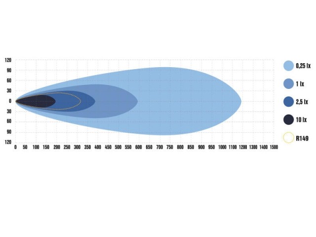 Rekkevidde, 1 lux: 334m / 592 m (R148/double up)