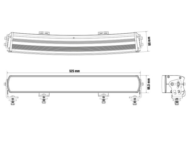 Dimensjon: 525.00 x 68.50 x 80.00mm