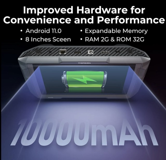 - Langvarig 10000mAh batteri for lengre brukstid, Android 11.0 for raskere brukergrensesnitt og prosessering. Utstyrt med USB-Type A-port, HDMI-port for projeksjon av diagnoseprosessen og TF-kortspor for opptil 128G ekstra lagring.